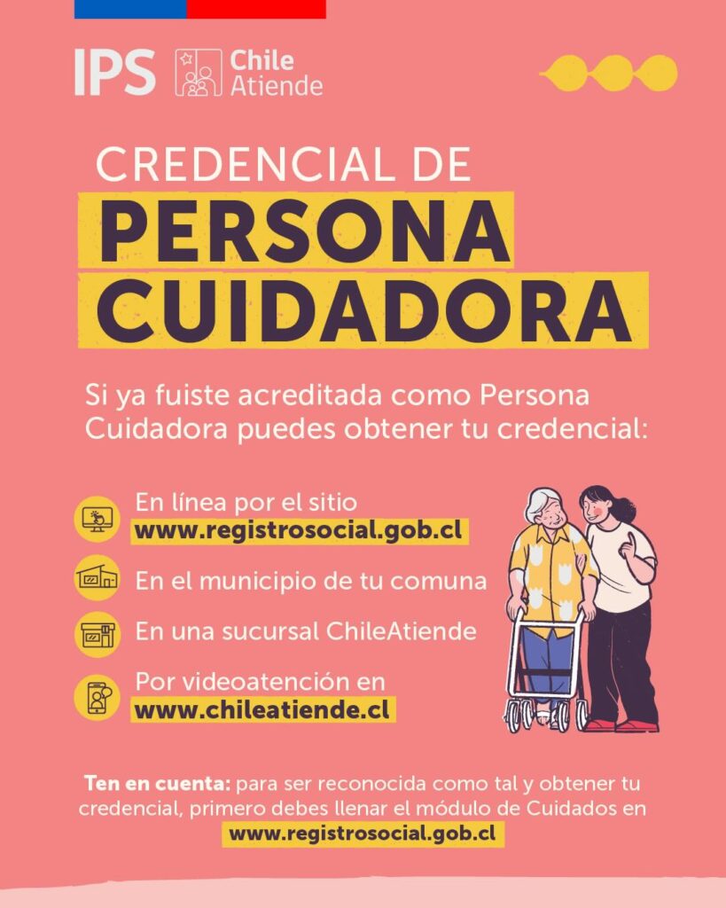 🤝 Cuidar a otros es un trabajo que merece reconocimiento. Si ya fuiste acreditada como Persona Cuidadora, puedes obtener tu credencial en línea, en tu municipio o en una sucursal ChileAtiende.
